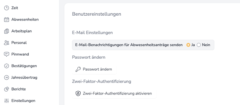 Diese Einstellungen finden sich im Timesia → Benutzereinstellungen (Profil-Button oben rechts)
