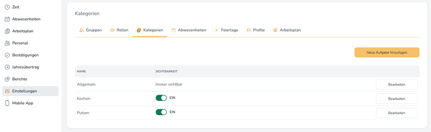 In der Kategorien-Verwaltung können verschiedene Aufgaben erstellt und verwaltet werden. Sie bieten einen