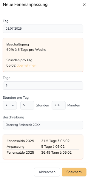 Schritt 4: Nachtrag Ferien und Gleitzeitüberträge