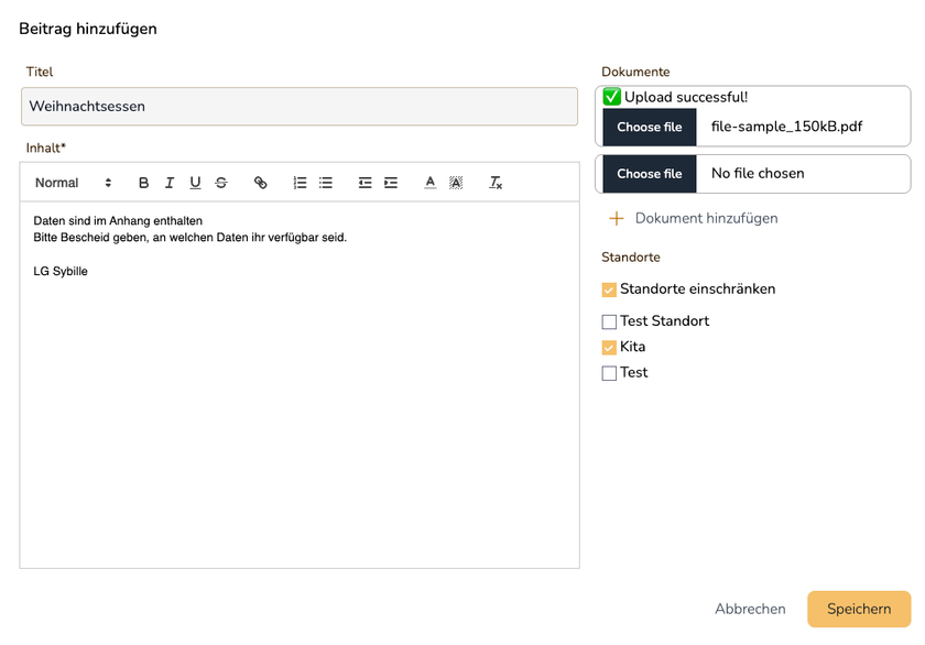 Diese Funktion ermöglicht es, Informationen und Dokumente mit den Mitarbeitenden zu teilen.
