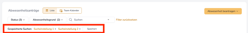 Dazu die Filter beim Status und Abwesenheitsgrund setzen und auf Speichern klicken.