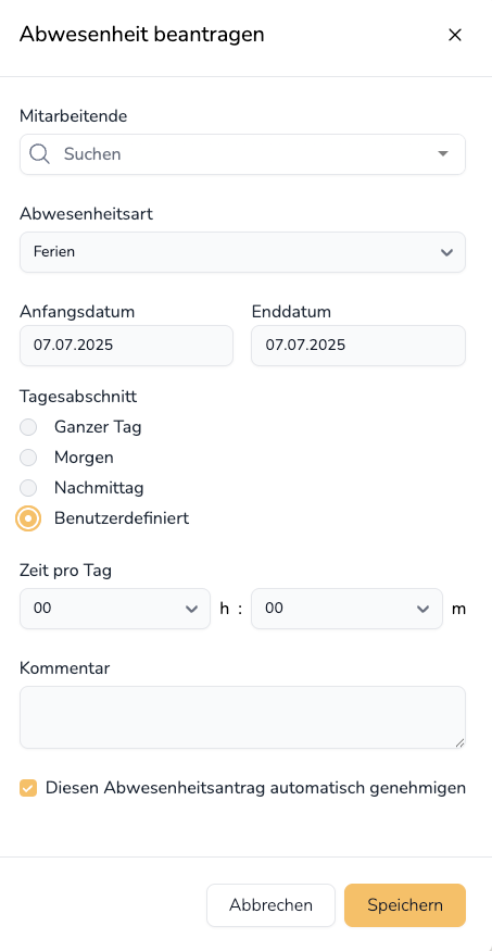 Eine Abwesenheit kann wie folgt beantragt werden: