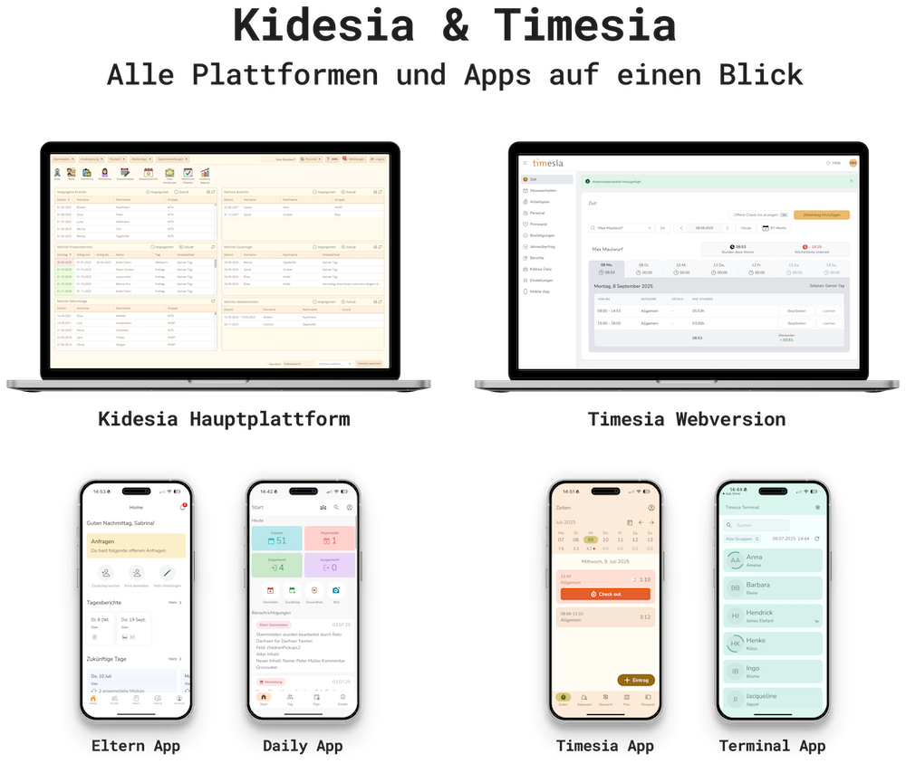 Kidesia und Timesia sind zwei unabhängige Systeme, die aber optimal miteinander verknüpft sind, so dass Sie ohne Aufwand zwischen den beiden Systemen wechseln können.