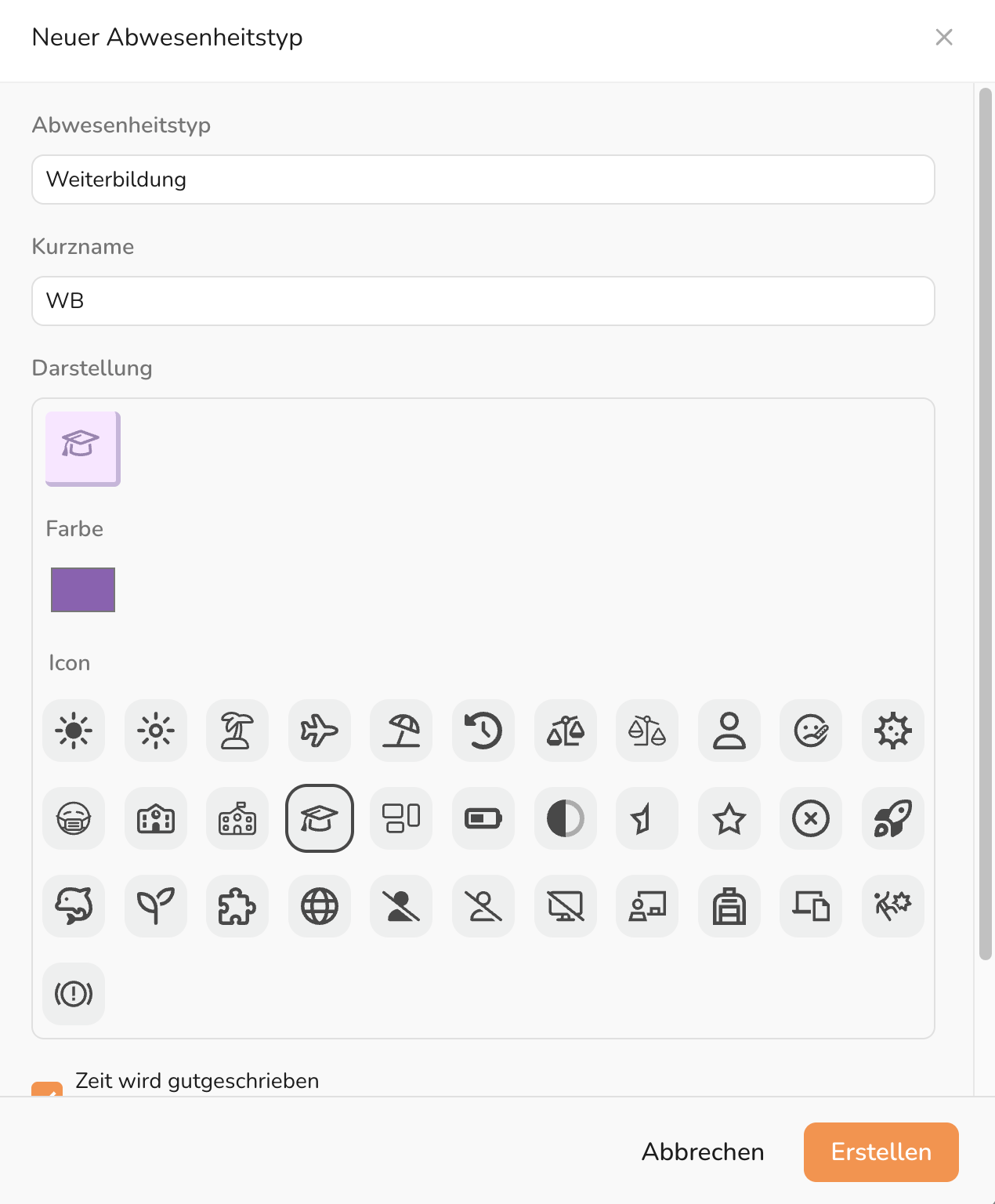 Abwesenheitstyp erstellen