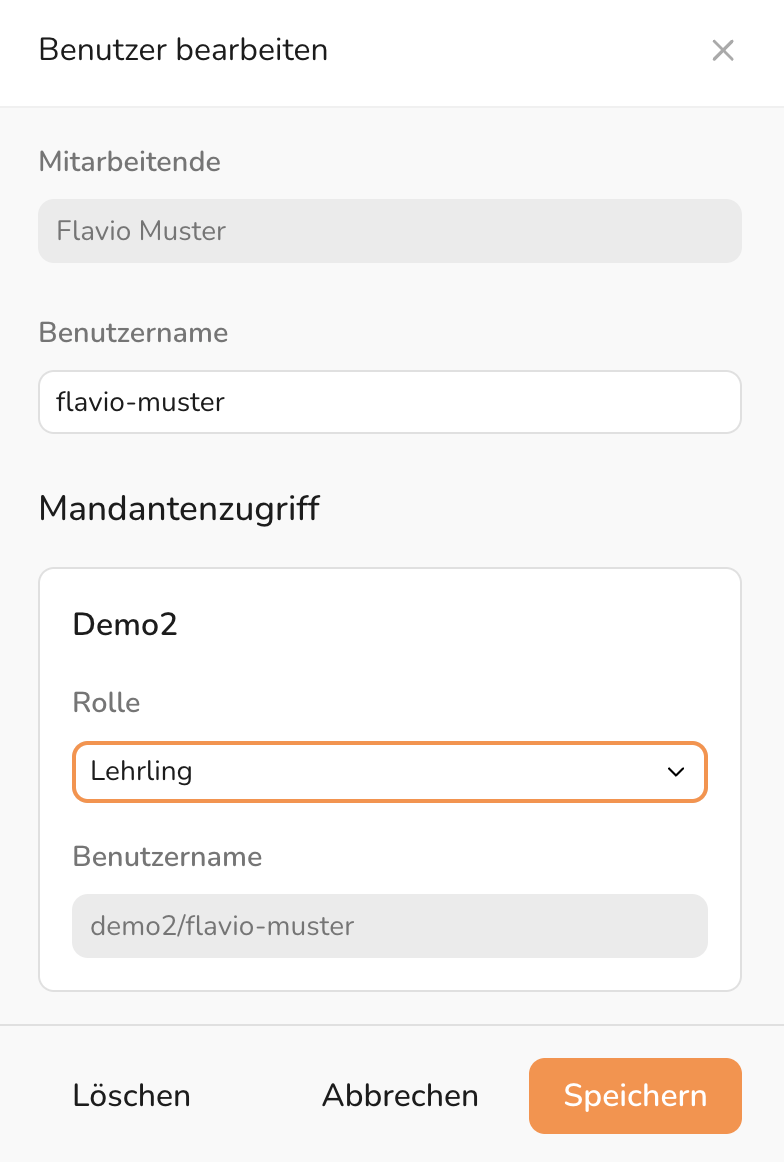 - Rolle (pro Mandant) vergeben