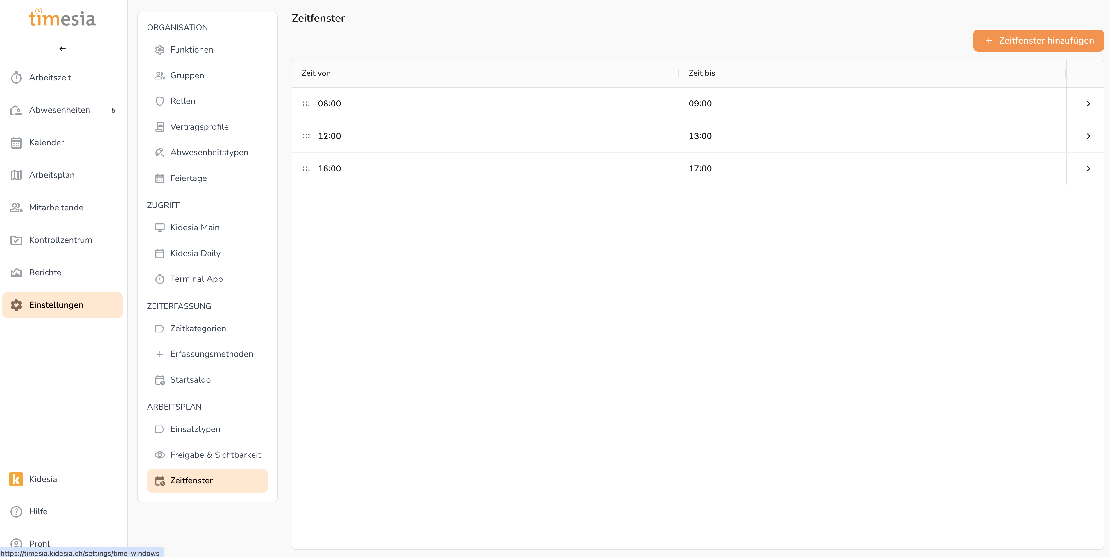 Abschnitt betitelt „Zeitfenster erstellen“Über den Button + Zeitfenster hinzufügenkann ein neues Zeifenster erstellt werden.