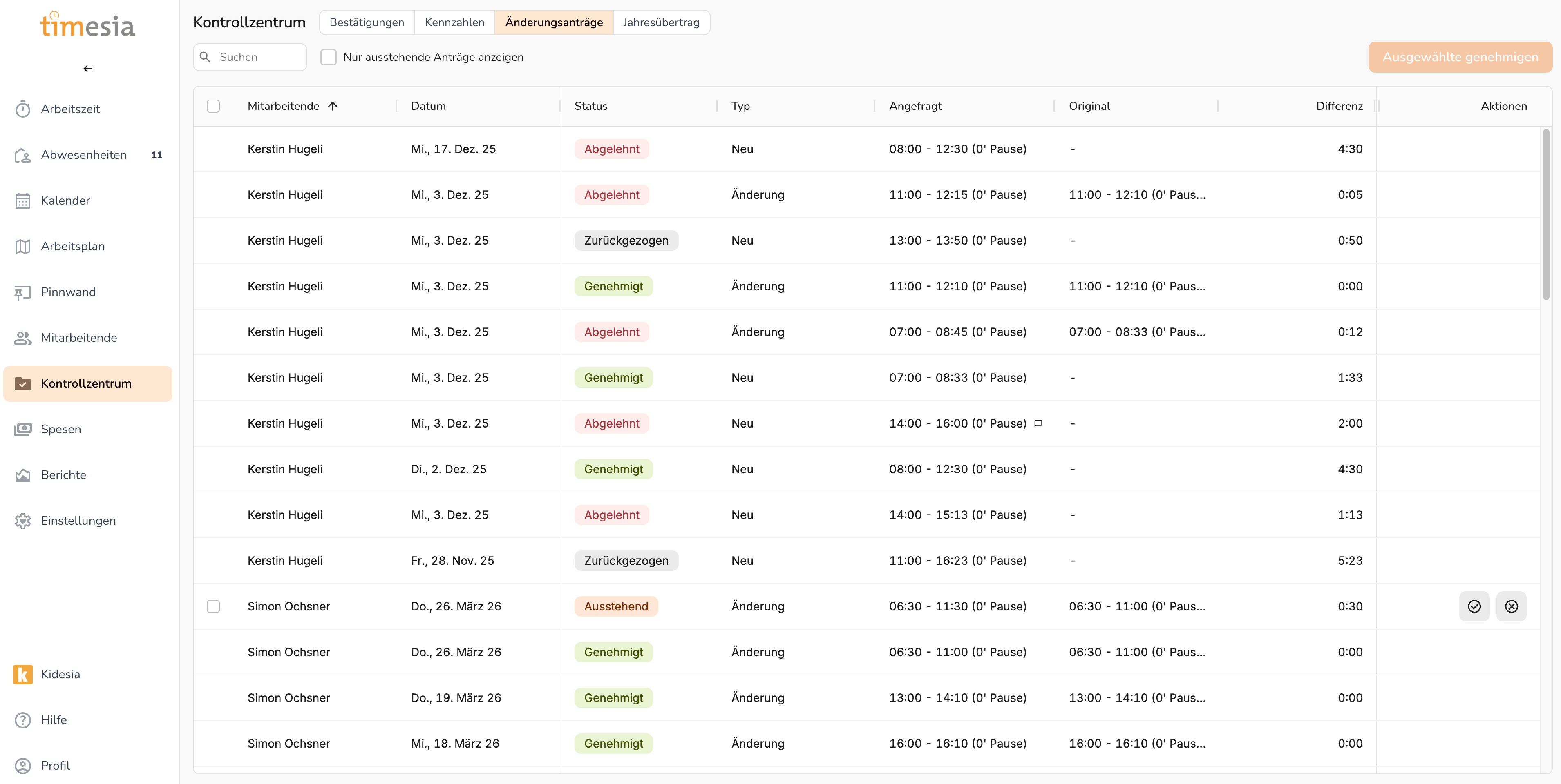 Diese Anträge erscheinen unter Kontrollzentrum → Änderungsanträge und müssen von einem Admin oder einer Führungsperson bearbeitet werden.