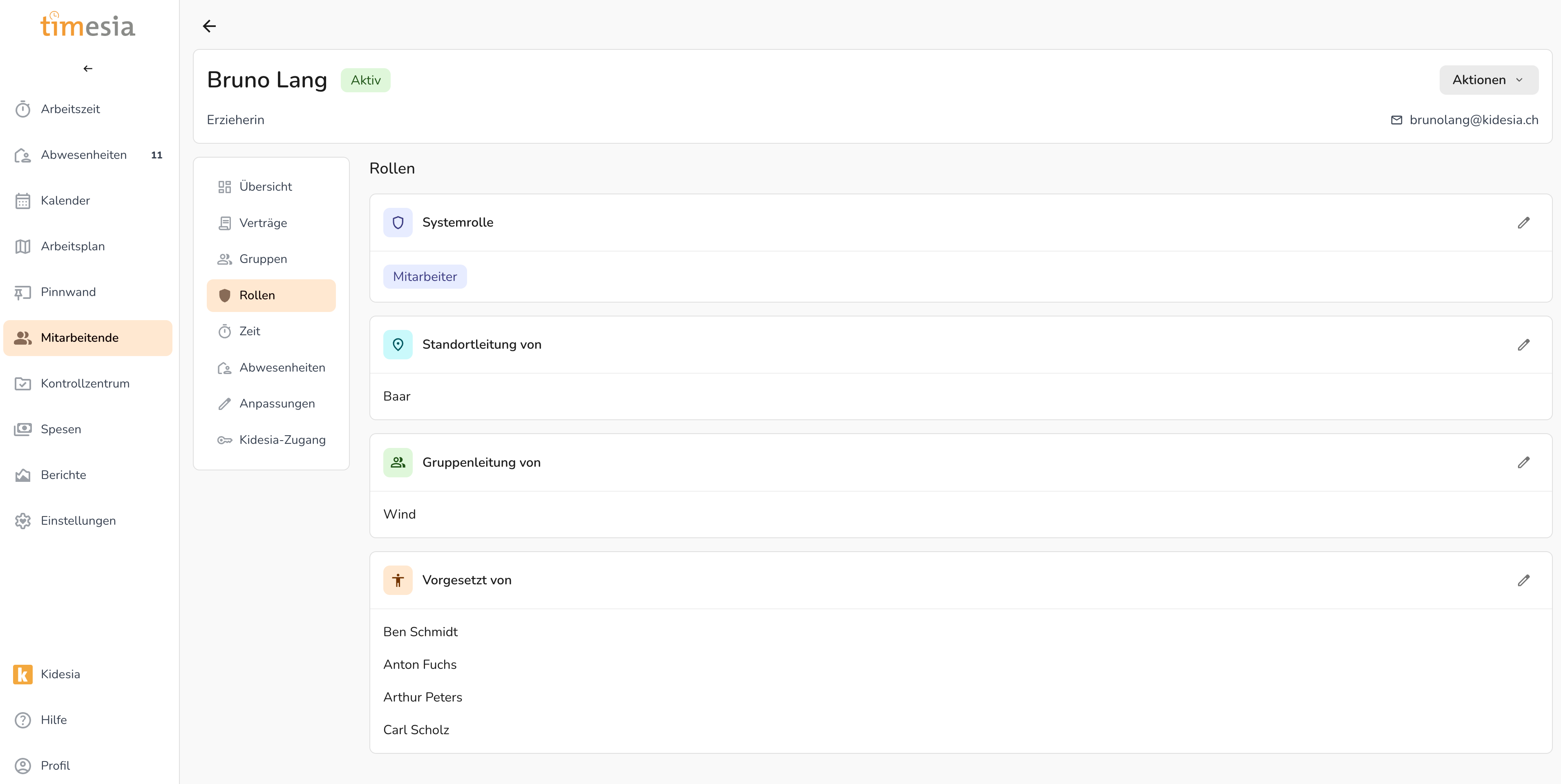 Abschnitt betitelt „Führungsrollen“Hat eine Person die Systemrolle Mitarbeitende aber ein Führungsfunktion, kann dieser Person eine zusätzliche Führungsrolle Gruppenleitung, Standortleitung oder vorgesetzt von zugewiesen werden.